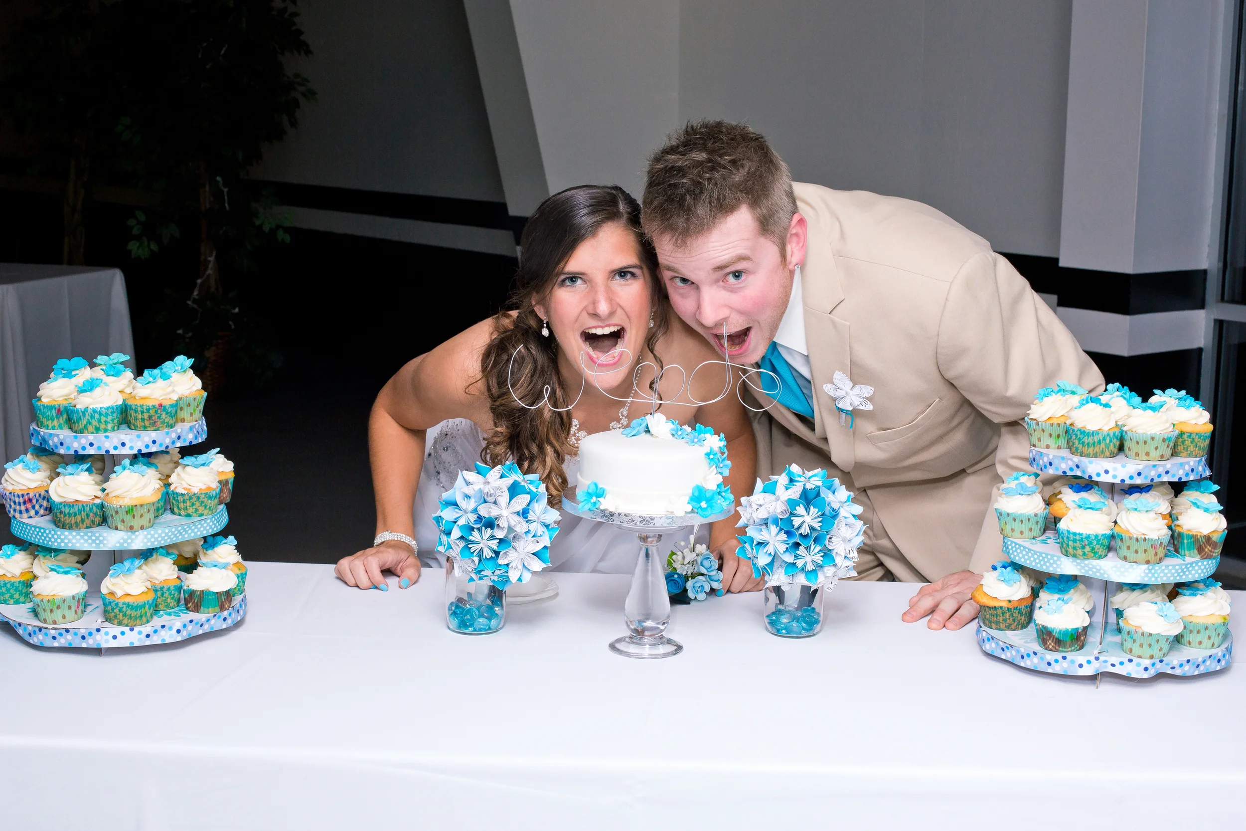 People were able to find their tables by using the lids of the mason jar favors. Each of the mason jars were placed on the table. The jars had a heart-shaped chalkboard sticker on the outside with the words Danielle and Jerry and our wedding date painted on the heart. The mason jars had straws and cupcake holders for toppers. The lids were located on another table and doubled as place cards. Total cost: $80