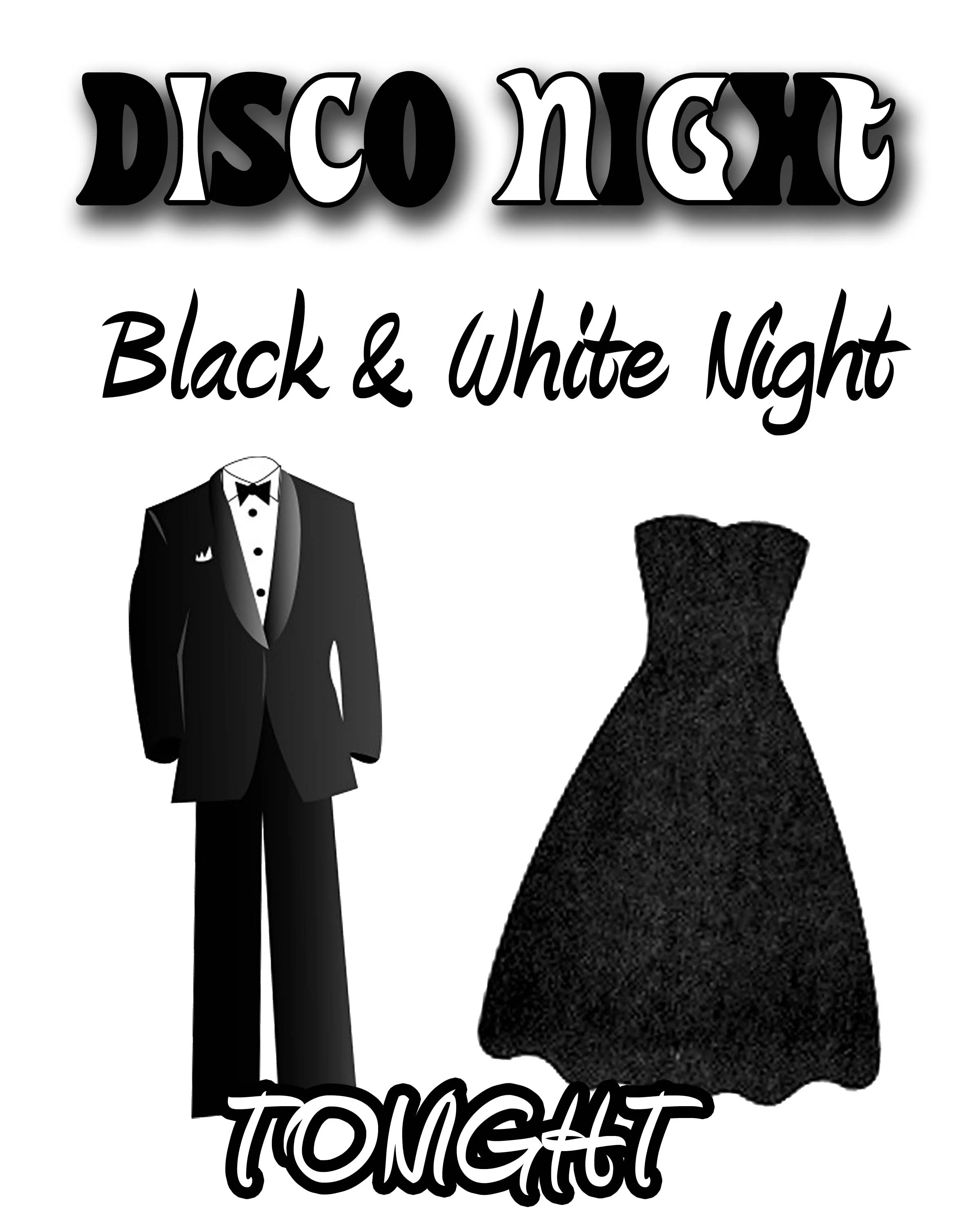 Our themes were fun and started out safe with Black and White Night. This one is pretty self-explanatory, wear black and white with your dancing shoes.