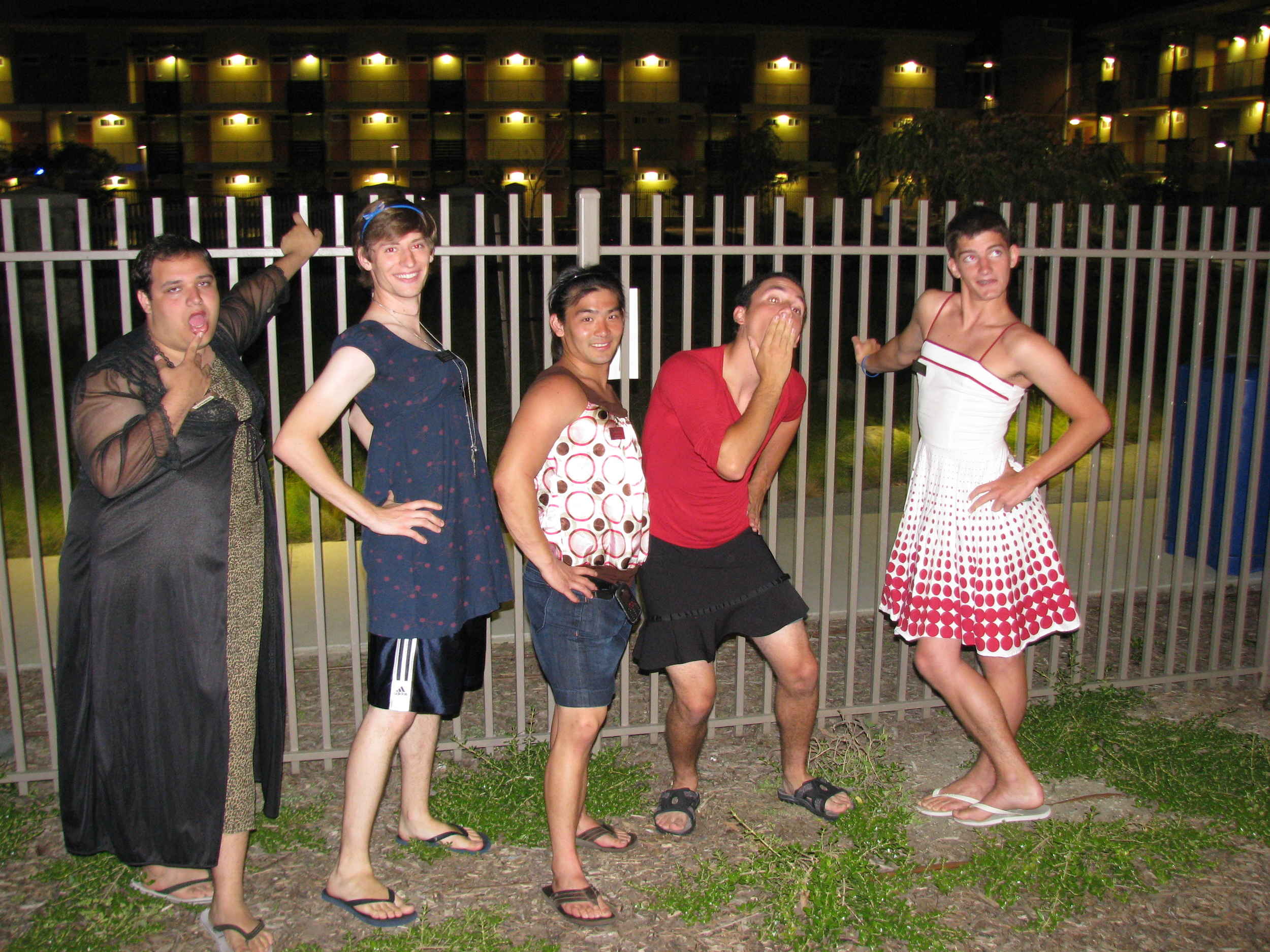 The second night was Reverse Party. The boys dressed up like girls and the girls like boys. The variety of outfits we saw was incredibly diverse. Some girls would just put on jeans and an over-sized polo shirt or button down. However, there were also boys that put on dresses, heels, and wore makeup and girls that drew facial hair on with their eyeliner pencils. The point of all of this was just to have a good time and enjoy a party with something a little different. Our staff was also in on the action... and yes I'm going to now embarrass them by posting photos of their ridiculous antics, that of which I fully appreciate!