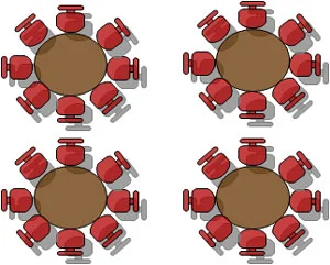 Hotels often have a nifty grid they give you that shows their capacity using each of the room setups. Here is an example of one: