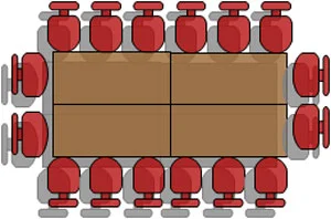 Selecting a room setup is dictated by the type of meeting that you're having. I work with people in a learning environment, so using classroom style or pods is usually preferable. People will want to take notes as they go and have space to spread out their binder or folder throughout the day. If I only have a meeting with 6-8 people then conference style is the best option.