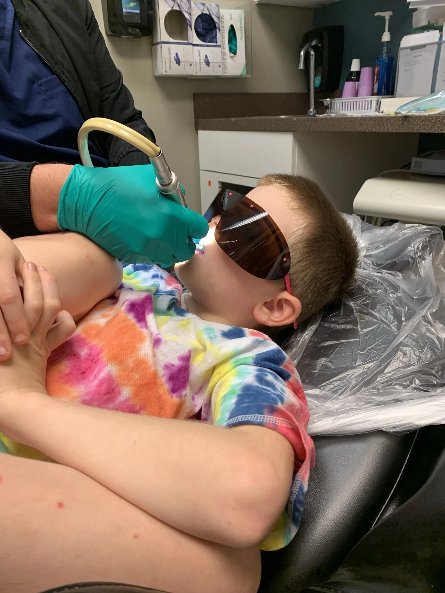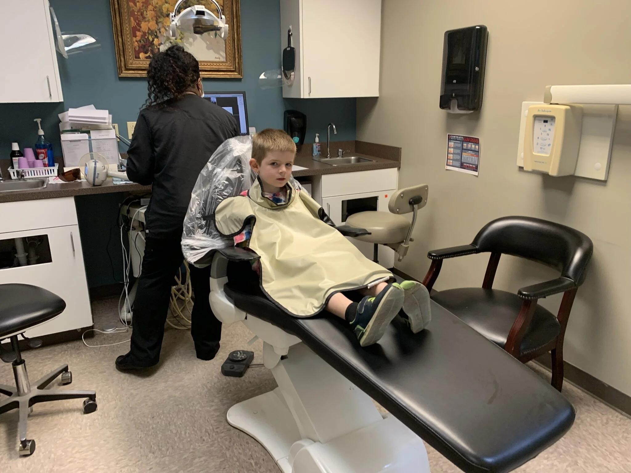 Not only that, my oldest, Gardner, with autism, needed a cavity filled so we had to come back. This was a first for me as a parent, plus the special needs aspect. I had no idea how this was going to go, but this new family dentist had all the right plans and all the right words. The dentist decided not to use analgesic gel because of the taste and smell that might set off a sensory meltdown for Gardner. They used language like, “this is something that needs to give your tooth a hug.” What a perfect description for the metal band they needed to use. He did great!